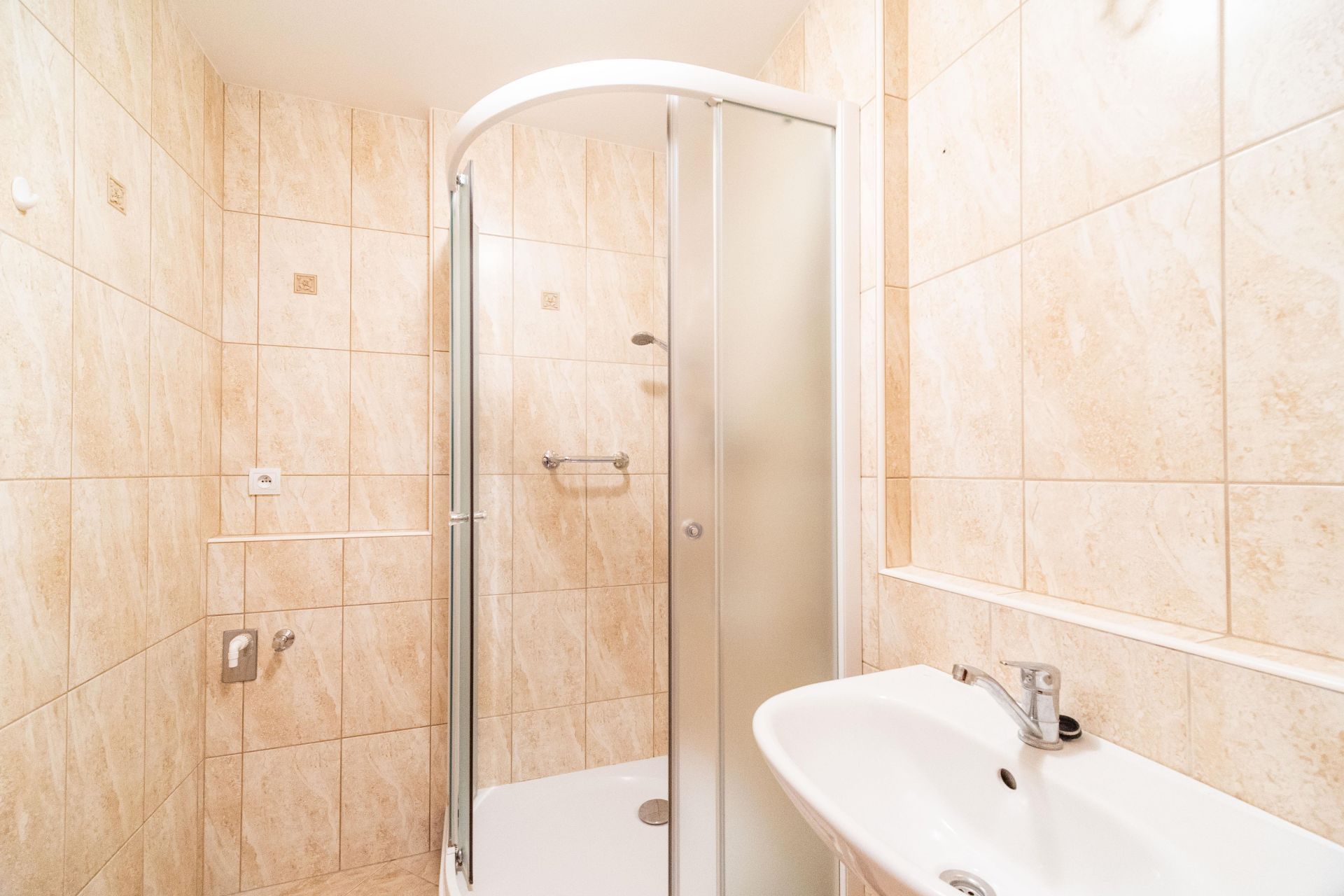 Byt je čiastočne zrekonštruovaný – plastové okná, podlahy, kuchynská linka, sprchový kút.